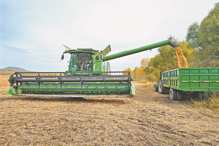 五大連池農(nóng)場(chǎng)大豆收獲告捷