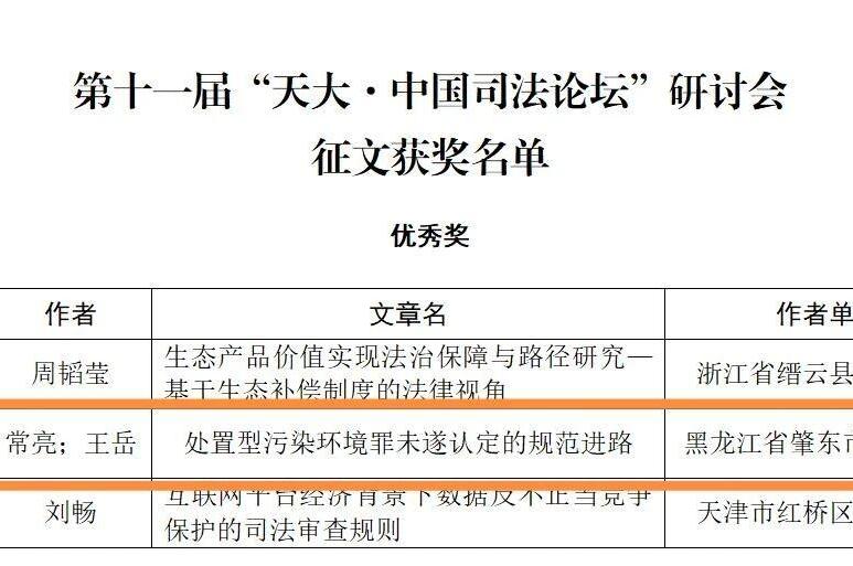 肇東市人民法院1篇論文榮獲第十一屆“天大·中國司法論壇”征文優(yōu)秀獎