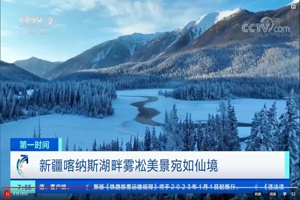 新疆喀納斯湖畔霧凇美景宛如仙境