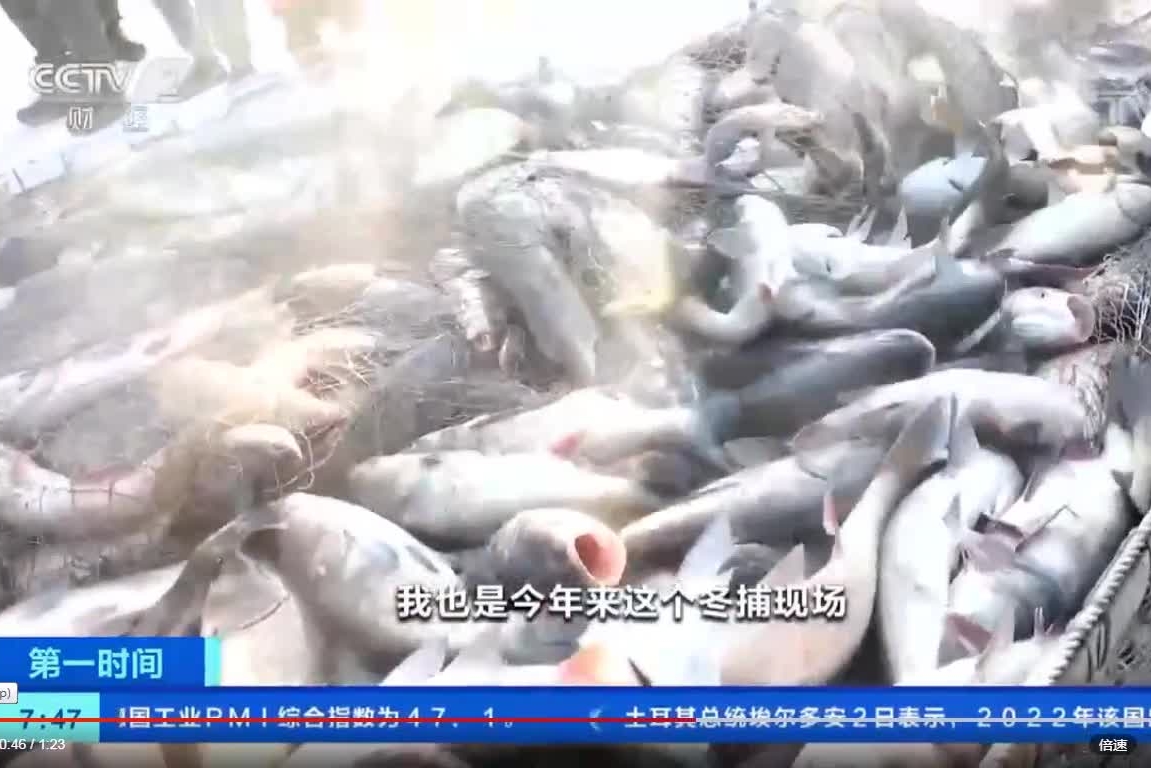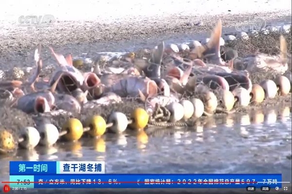 吉林松原:千米大網(wǎng)合圍魚群 冬捕隊拉網(wǎng)出水