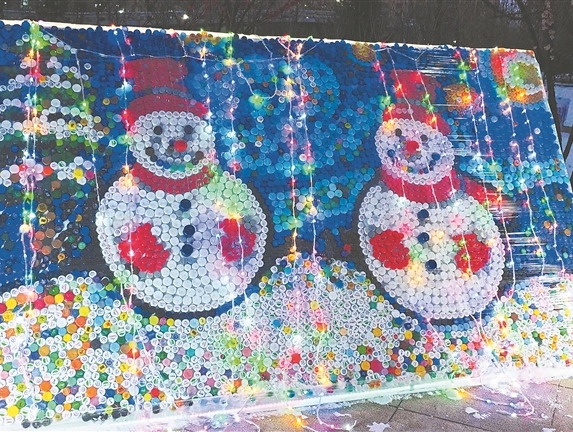 8760個(gè)小瓶蓋拼成亞冬會(huì)祝福畫卷