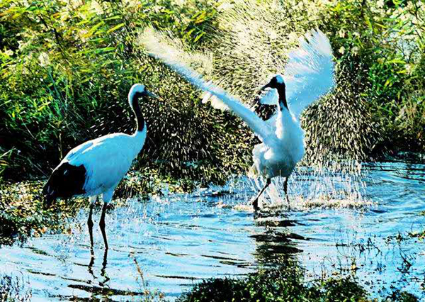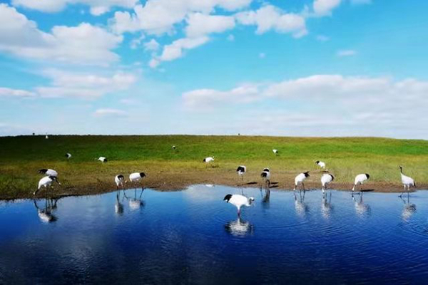 丹頂鶴之所以可以在齊齊哈爾的街上“溜達(dá)”,那也是有原因的,好生態(tài)為“溜達(dá)鶴”創(chuàng)造了優(yōu)勢條件。齊齊哈爾扎龍國家級自然保護(hù)區(qū)是我國以鶴類等大型水禽為主的珍稀水禽分布區(qū),是世界上最大的丹頂鶴繁殖地。這里葦草肥美、魚蝦豐盛,是鳥類繁衍的天堂,也是丹頂鶴的故鄉(xiāng)。每年有6種珍稀鶴類在此繁殖停歇,素有“鶴鄉(xiāng)”之稱。