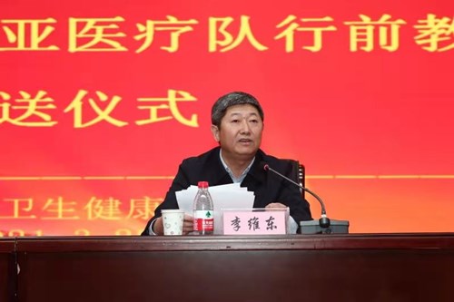 黑龍江省衛(wèi)生健康委黨組成員、副主任李維東作動員講話并為醫(yī)療隊授旗。他要求全體隊員深入貫徹新時代黨的建設總體工作要求,把“不忘初心、牢記使命”作為持續(xù)加強黨的建設的永恒課題和黨員干部的終身課題。務必高度重視疫情防控,做到人物并防、多病同防,疫情防控必須慎終如始,要傳遞好中國抗疫經(jīng)驗,落實好對口醫(yī)院合作機制,推進援助項目創(chuàng)新。并以身邊的抗疫英雄為榜樣,秉承援外醫(yī)療優(yōu)良傳統(tǒng)、弘揚偉大抗疫精神。