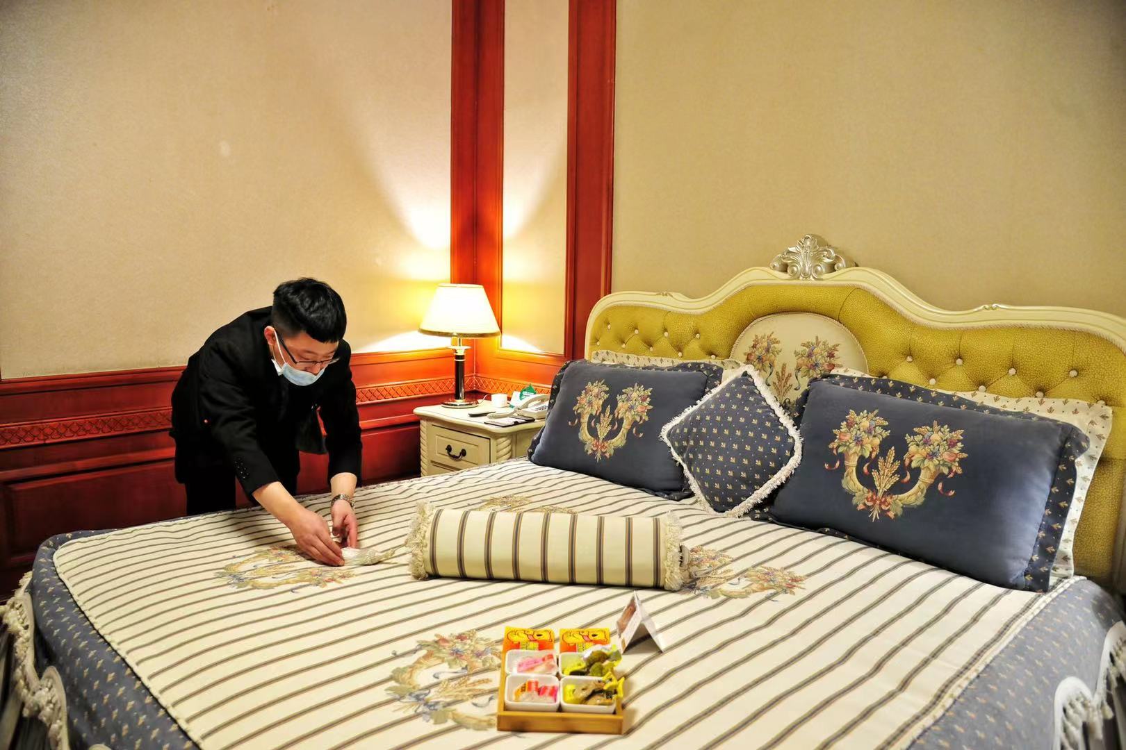 邱冬梅說,為了保證賓客住得安心放心,賓館在疫情防控和安保方面提前做了很多針對性的工作。進入4月初就組織全體員工開展業(yè)務(wù)知識及專業(yè)技能、酒店禮儀、員工儀容儀表等崗位技能培訓(xùn)。