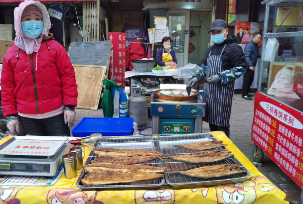 早市的吸引力在于“看”。早市上,各攤主會(huì)想各種各樣的方式招攬顧客,有的會(huì)用廣告牌,有的會(huì)吆喝。早市上的商業(yè)運(yùn)作方式也非常有趣,比如現(xiàn)場(chǎng)擠羊奶,旁邊拴幾頭奶羊,當(dāng)招牌;賣(mài)刀切面的現(xiàn)場(chǎng)切,炸油條的現(xiàn)場(chǎng)炸,都是明檔手工,這幾乎是大多數(shù)早市商家的促銷(xiāo)手段。也有推銷(xiāo)老花鏡的,賣(mài)衣服的,會(huì)現(xiàn)場(chǎng)吆喝“正宗商品專(zhuān)柜,清倉(cāng)促銷(xiāo)”——這大概是現(xiàn)在“直播帶貨”的線下模式。住在早市附近的居民,有的會(huì)在樓上用繩子吊下個(gè)籃子,讓攤主把東西放到籃子里,直接拽上去。