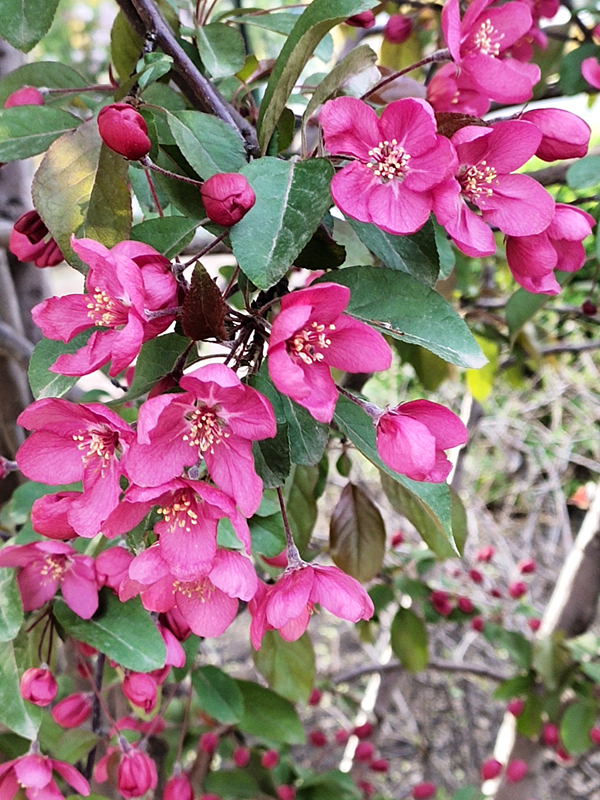 我省地處高海拔地區(qū),冬季寒冷,海棠能生長開花較為罕見。(祝東)