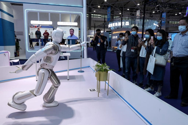 5月26日,智能機(jī)器人在數(shù)博會(huì)上跳舞。新華社記者 歐東衢 攝