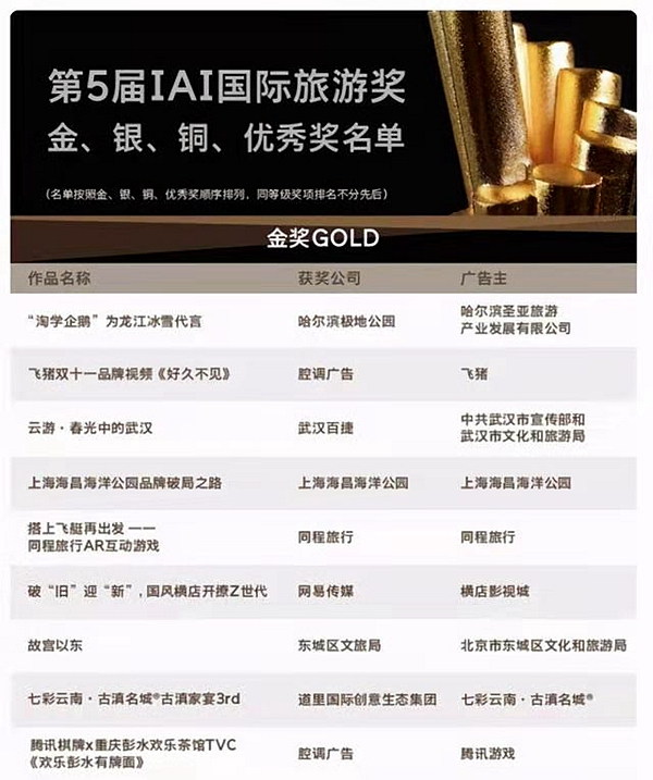 據(jù)了解,IAI國際旅游獎是知名的綜合性廣告與品牌營銷賽事評選,是國際化的旅游營銷及行業(yè)運營評選活動。國內(nèi)眾多營銷及廣告類重量級機構(gòu)參與角逐,此次組委會共收到779家公司報送的3083件作品及案例,由270多位來自各領(lǐng)域的專家組成的終審團進行評審。