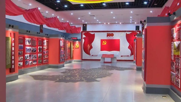 展廳中央懸掛著鮮艷的中國共產黨黨旗。在趙萬山領誓下,大家面對黨旗,舉起右手,重溫入黨誓詞。