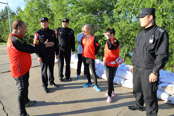 漠河市副市長、公安局黨委書記、局長姜明君,局黨委委員李永鳴、張華武分別帶領(lǐng)各突擊小分隊與北極鎮(zhèn)政府緊密對接,劃分責任片區(qū),定人定崗巡回查看黑龍江江堤水位、道路排水設施和人防工程等情況。突擊隊中,科級以上干部、部門負責同志近三分之一,黨員民警近五分之二,主動請纓沖在防洪防汛第一線,充分發(fā)揮模范帶頭作用。