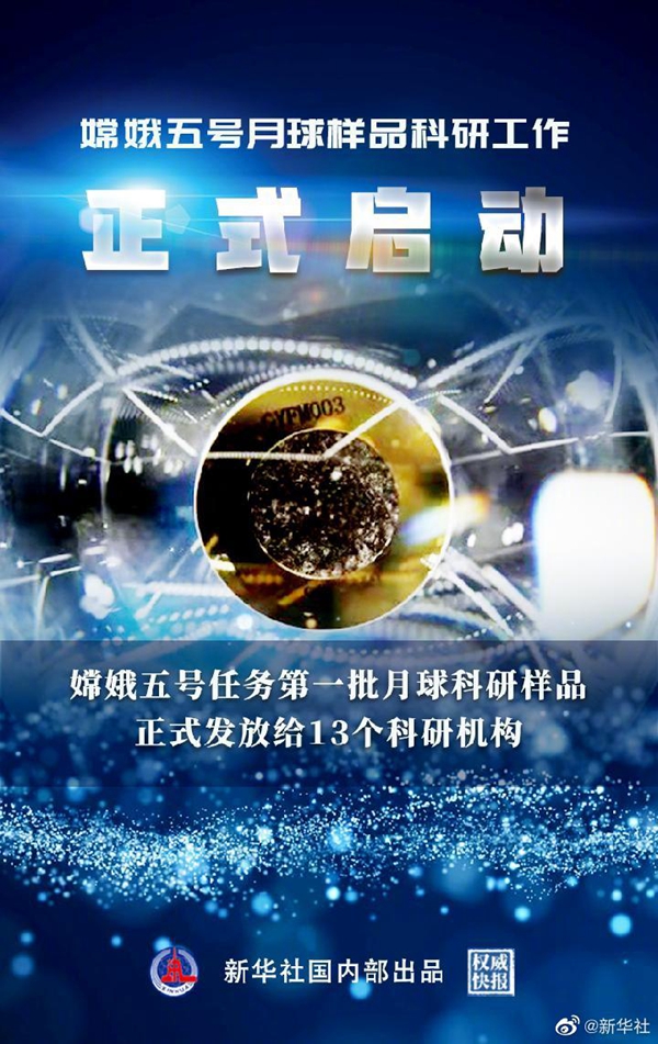 剛剛,國家航天局探月與航天工程中心在京舉行嫦娥五號任務(wù)第一批月球科研樣品發(fā)放儀式,標志著月球樣品科學(xué)研究工作正式啟動。經(jīng)審核,來自13所科研機構(gòu)的31份申請獲得通過。(新華社記者 胡喆 海報設(shè)計 苗夏陽)