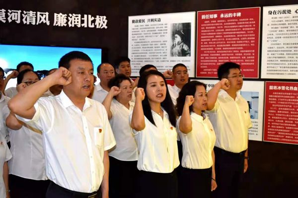 在漠河市廉政教育基地,塔河林業(yè)局研學(xué)交流團(tuán)成員在講解員生動(dòng)的講解下,依次參觀了“以古鑒今 廉潔中華”、“正風(fēng)肅紀(jì) 馳而不息”、“前車之鑒 警鐘常鳴”、“清正為民 廉潔風(fēng)范”四個(gè)篇章。通過一個(gè)個(gè)觸目驚心的腐敗案例、一幅幅發(fā)人深省的圖片和當(dāng)事人的懺悔實(shí)況錄像,對(duì)現(xiàn)場(chǎng)每一個(gè)人給以強(qiáng)烈的心靈震撼,進(jìn)一步提高了大家對(duì)反腐倡廉重大意義的認(rèn)識(shí)和感悟,筑牢防腐拒變思想防線。在深受警示教育的同時(shí),研學(xué)交流團(tuán)全體黨員干部高舉右拳,面對(duì)黨旗莊嚴(yán)宣誓,重溫入黨誓詞,并在“廉潔宣誓化于心,廉潔承諾重于行”橫幅上鄭重簽下自己的名字,表達(dá)了一定要樹牢不忘初心、勇?lián)姑?、廉潔從政的信念和決心。