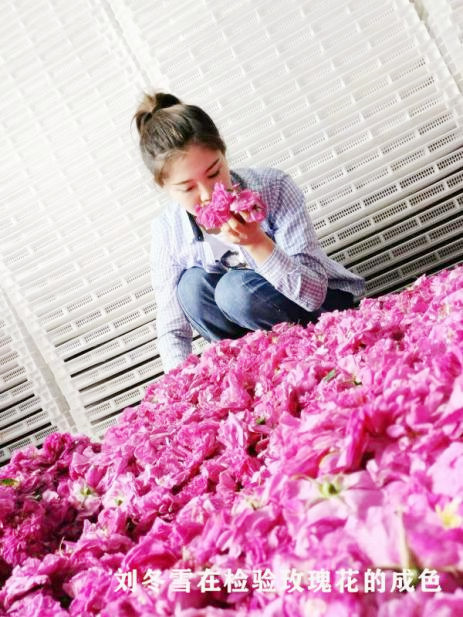 今年32歲的劉冬雪,從小就看著外公王占龍帶領(lǐng)父親及家人試種玫瑰花,剛開始種植品種單一,種植面積小,玫瑰產(chǎn)量低。2009年,正在讀高中的劉冬雪,在外公和父親的影響下,加入到玫瑰花種植工作中,幫助老輩管理生產(chǎn)、銷路、產(chǎn)品創(chuàng)新等多個環(huán)節(jié)。劉冬雪有文化、肯專研,女孩子對玫瑰花更是情有獨(dú)鐘,父輩一商量將合作社經(jīng)理的重?fù)?dān)就交給了她。劉冬雪深知近年隨著玫瑰面積和產(chǎn)量的不斷提高,他們還是家庭小作坊模式,“單打獨(dú)斗”地跑市場,只能是小打小鬧。為此,她跑市場、找銷路、先后到云南、山東等地考察,了解鮮花生產(chǎn)和銷售。并函授學(xué)習(xí)了林農(nóng)大專課程,不斷更新鮮花品種,提升鮮花品質(zhì),逐步打開了鮮花銷路。劉冬雪也深入思考,只賣原材料經(jīng)受不了市場的考驗,她夢想建一個玫瑰花深加工企業(yè),但是,因缺少資金遲遲沒有實現(xiàn)心中的愿望。