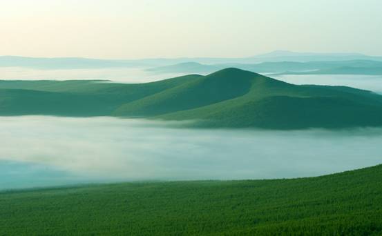 黑河地處大興安嶺東端,小興安嶺北部,境內群山連綿起伏,溝谷縱橫,地貌特征豐富:低山、丘陵、火山熔巖臺地、盆地、平原和河谷不一而足,就像一曲森林小夜曲,節(jié)奏自由、表現手法豐富,極富浪漫主義色彩。