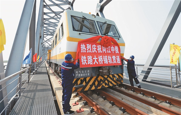 據(jù)中國(guó)鐵路哈爾濱局集團(tuán)有限公司介紹,同江中俄黑龍江鐵路大橋建設(shè)創(chuàng)造了多項(xiàng)紀(jì)錄。它是連接中俄兩國(guó)的首座跨江鐵路大橋,在國(guó)內(nèi)外首次采用鋼桁梁上鋪設(shè)四線套軌無(wú)砟軌道板施工方案。