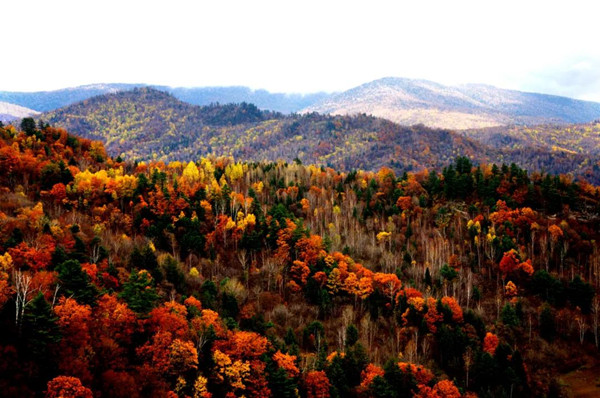 一樹一景都是它的作品,染紅楓葉,點(diǎn)黃白樺,為紅松再添蒼翠,將五彩林都繪就。