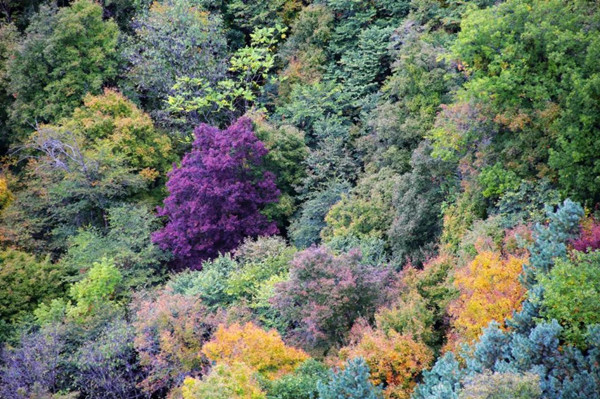 去桃山懸羊峰景區(qū)登高望遠(yuǎn),大山大河的遠(yuǎn)闊景象令人著迷。走在斑斕林間,秋日的陽光穿過層疊錯(cuò)落的枝葉,留下一地斑駁。