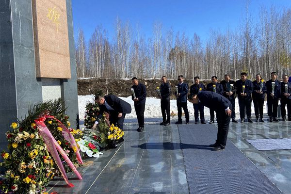 東北抗日聯(lián)軍第三路軍第三支隊(duì)是在中國(guó)共產(chǎn)黨領(lǐng)導(dǎo)下的一支英雄部隊(duì),在庫(kù)楚河戰(zhàn)斗中,全體指戰(zhàn)員團(tuán)結(jié)一致,頑強(qiáng)奮戰(zhàn),整整打了一天,百余人的隊(duì)伍只剩下25人,他們?yōu)橹腥A民族的解放事業(yè)獻(xiàn)出了自己的生命,英雄事跡將永遠(yuǎn)被人們銘記。紀(jì)念碑體型似三把利箭,象征著中華民族勇敢、頑強(qiáng)和不屈不撓的斗爭(zhēng)精神。原中共黑龍江省委原副書記、黑龍江省人民政府原省長(zhǎng)陳雷同志為紀(jì)念光榮犧牲的抗聯(lián)烈士寫下祭聯(lián):“鏖戰(zhàn)興安一片天,庫(kù)楚河水淚潸潸。百多忠骨遺荒野,常憶英雄去不還?!奔瘓F(tuán)公司黨委書記于輝,黨委副書記、總經(jīng)理李軍等集團(tuán)公司領(lǐng)導(dǎo)帶隊(duì)徒步9公里,重走抗聯(lián)路,向烈士敬獻(xiàn)花籃,深切緬懷為民族獨(dú)立和人民解放而犧牲的英烈,追憶他們的豐功偉績(jī),傳承紅色基因,賡續(xù)紅色血脈。