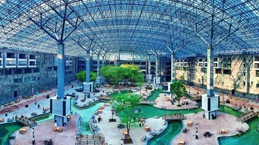五大連池火山溫泉水世界是黑龍江省北部最大的室內(nèi)水上娛樂項目,總占地面積15.2萬㎡。火山溫泉水世界是以溫泉養(yǎng)生文化為主題,以火山為主要元素的園林式水上樂園。對游樂設(shè)施進行文化植入、主題化包裝,建成集特色溫泉水上游樂、餐飲娛樂、休閑購物和旅游觀光于一體的室內(nèi)水上娛樂及溫泉養(yǎng)生綜合體。