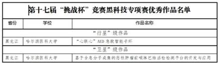 黑龍江經(jīng)濟(jì)網(wǎng)訊(黑龍江日報(bào)全媒體見習(xí)記者董廣碩 商祺)近日,第十七屆“挑戰(zhàn)杯”全國大學(xué)生課外學(xué)術(shù)科技作品競賽落下帷幕,哈爾濱醫(yī)科大學(xué)附屬二院團(tuán)隊(duì)《“心聯(lián)心”AED急救智能手環(huán)》和哈醫(yī)大附屬腫瘤醫(yī)院團(tuán)隊(duì)《基于全息分子成像系統(tǒng)的惡性腫瘤前哨淋巴結(jié)活檢檢測平臺的開發(fā)與應(yīng)用》兩個作品在“黑科技”專項(xiàng)賽終審決賽中,分別榮獲“行星級”和“衛(wèi)星級”稱號。