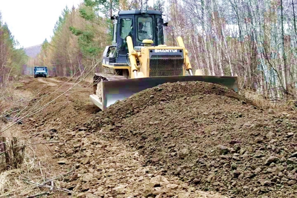 走進(jìn)大興安嶺林業(yè)集團公司阿木爾林業(yè)局1—4線,就會看到火熱的勞動場面,只見大型翻斗車輛滿載砂石料蹣跚而過,伴隨著推土機的轟鳴聲,剛卸掉的砂石料很快被鏟平,道路在職工的辛勤工作下,一步步變寬、一步步向前延伸。