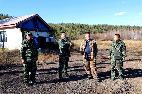 圖為阿木爾林業(yè)局黨委書記胡守慶(中)深入到龍河林場查看利用閑置房產(chǎn)改造成精品民宿情況。王力 攝