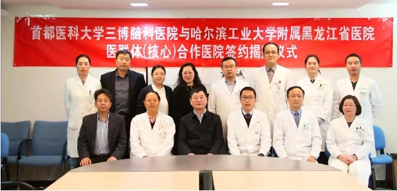 黑龍江省醫(yī)院黨委書記劉宏石、副院長(zhǎng)陳鵬,首都醫(yī)科大學(xué)三博腦科醫(yī)院院長(zhǎng)徐向英、黨委書記王保國(guó)、副院長(zhǎng)張宏偉等領(lǐng)導(dǎo)出席,并為牌匾揭牌。黑龍江省醫(yī)院神經(jīng)外二科程化坤主任、護(hù)理部冷菲菲主任及三博腦科醫(yī)院相關(guān)科室負(fù)責(zé)人等參加了本次簽約揭牌儀式。