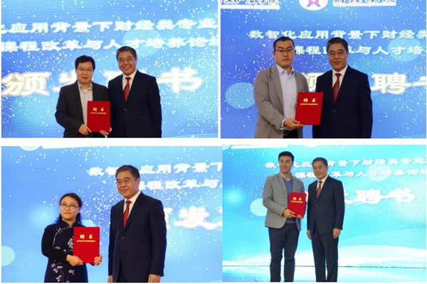 陳西峰為山東財經(jīng)大學會計學院院長王愛國教授、華僑大學工商管理學院博士生導師楊洪濤教授、哈爾濱工程大學經(jīng)濟管理學院博士生導師楊忠海教授頒發(fā)客座教授聘書,為財智未來(北京)教育科技有限公司總監(jiān)聶鑫、中聯(lián)集團教育科技有限公司產(chǎn)教融合事業(yè)部總監(jiān)侯劉成頒發(fā)企業(yè)導師聘書。