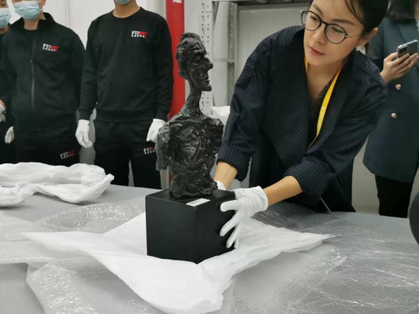 蘇富比為第四屆進(jìn)博會帶來賈柯梅蒂的《戴亞高的半身像》 新華社記者桑彤 攝