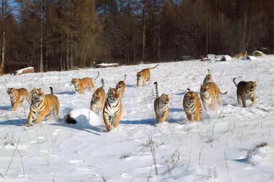 令人震撼的鏡泊湖吊水樓的冰瀑是牡丹江冬季的重要景點(diǎn)之一。在冰凌交錯(cuò)、銀裝素裹的純凈世界里,世界吉尼斯紀(jì)錄創(chuàng)造者——中國(guó)懸崖跳水奇人狄煥然,在零下二十多度的鏡泊湖吊水樓冰瀑上,伸展雙臂,凌空一躍,撲向不結(jié)冰的黑龍?zhí)端妫肼洳罱?0米的水中,成為鏡泊湖景區(qū)冬季的一道獨(dú)特景觀。鏡泊湖水系水質(zhì)較好,水產(chǎn)資源極為豐富,大約有六十多種魚,冬季體驗(yàn)鏡泊湖的大網(wǎng)捕魚、小網(wǎng)掛魚,在每年辭舊迎新之際看一場(chǎng)冬捕,絕對(duì)是預(yù)示著年年有余好兆頭的絕佳體驗(yàn)。在漁夫們高亢的號(hào)子聲中,800多米長(zhǎng)的大網(wǎng)從冰洞中漸漸滑出,胖頭魚、鯽魚、鯉魚等翻滾著、跳躍著,冒著熱氣蹦到冰面,“萬尾鮮魚出玉門”的奇觀景象讓人感嘆不已。橫道東北虎林園是世界上最大的東北虎人工飼養(yǎng)繁育基地和野化訓(xùn)練基地。在幾代養(yǎng)虎人的辛勤努力下,已繁育活體東北虎1100余只,建有猛虎園、靈長(zhǎng)類館、幼虎生態(tài)館、高空玻璃棧道、珍稀動(dòng)物觀賞園、科普展覽館、觀虎長(zhǎng)廊、虎文化廣場(chǎng)等多個(gè)景點(diǎn)。在這里,可以感受到獸中之王奔跑在蒼茫林海雪原的風(fēng)馳電掣。也可以感受到成群東北虎躺臥在皚皚白雪“互談心事”的百般愜意,還可以領(lǐng)略到虎牛相斗、群虎撲食的驚險(xiǎn)刺激。