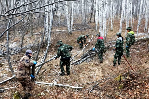 塔河林業(yè)局組織機關(guān)科室400余名黨員干部開展森林撫育工作,助力企業(yè)增效、職工增收(段明琦/攝)