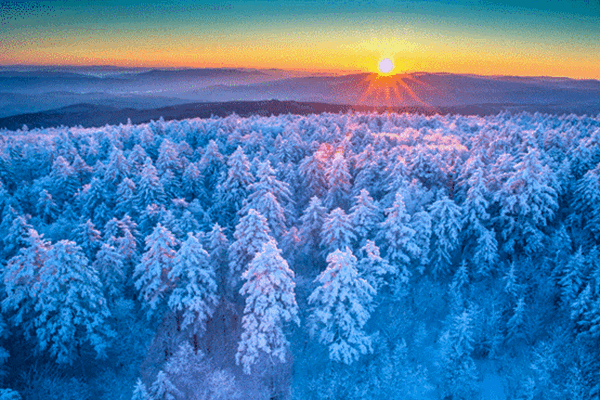 伊春擁有400萬公頃的浩瀚森林,高達83.8%的森林覆蓋率,交相輝映的茫茫林海與皚皚白雪,萬里冰封、壯美遼闊的小興安嶺,構(gòu)成了這個冬天最浩瀚壯美的景色。夏季的天然氧吧,在冬季化為了冰雪童話世界。大雪過后,五營國家森林公園之中,千樹萬樹猶如梨花盛開,描繪著冬日的醉人景象。