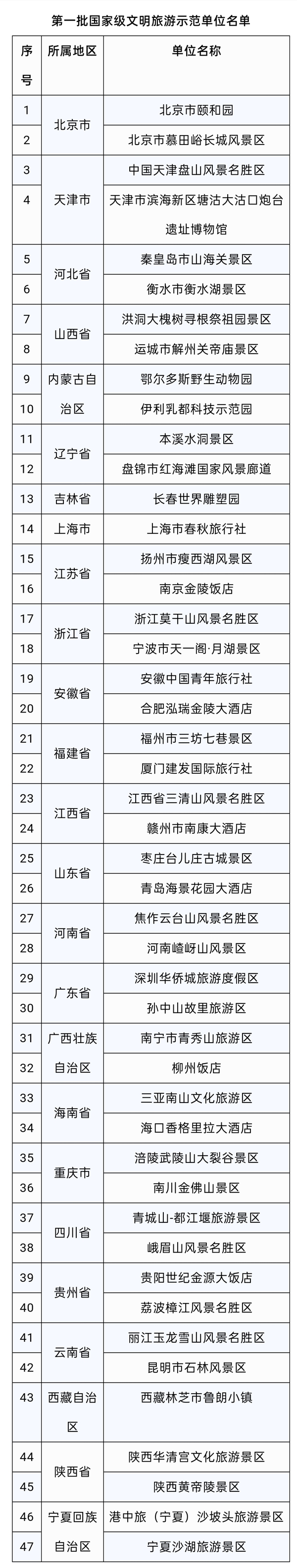 新華網(wǎng)訊(記者 余俊杰)記者18日從文化和旅游部獲悉,經(jīng)自愿申報(bào)、省級(jí)文化和旅游行政部門審查推薦、全國旅游標(biāo)準(zhǔn)化技術(shù)委員會(huì)最終評(píng)定后,認(rèn)定北京市頤和園等47家單位達(dá)到國家級(jí)文明旅游示范單位標(biāo)準(zhǔn)。