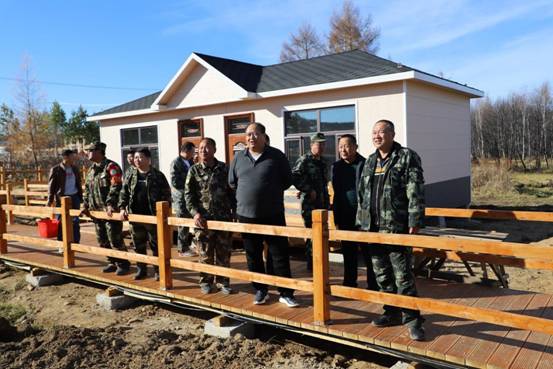 阿木爾林業(yè)局黨委書記胡守慶(右四)檢查指導(dǎo)興安林場精品民宿,發(fā)展旅游產(chǎn)業(yè)(王力 攝)