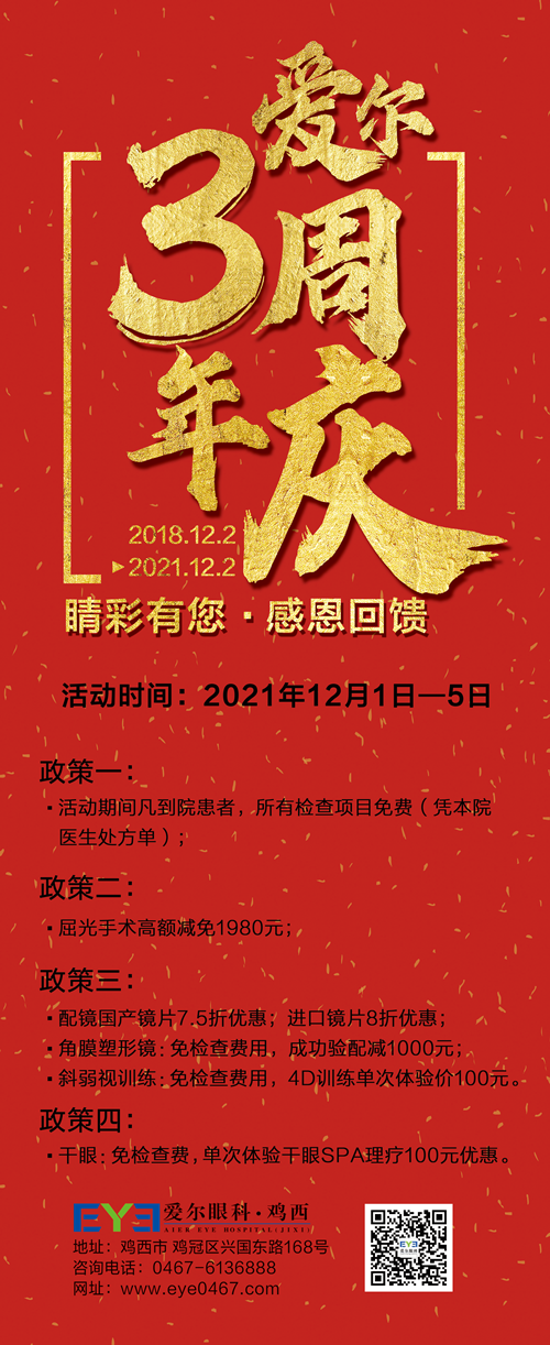 2021年的12月2日,雞西愛爾眼科醫(yī)院迎來了他三周歲生日。