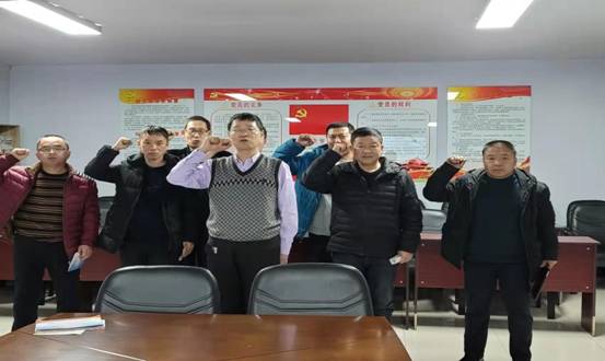 在中國(guó)共產(chǎn)黨入黨誓詞展示墻前,黨員干部們面向黨旗,高舉右手,重溫了入黨誓詞,我志愿加入中國(guó)共產(chǎn)黨,擁護(hù)黨的綱領(lǐng)......隨時(shí)準(zhǔn)備為黨和人民犧牲一切,永不叛黨?;貞浫朦h過程加固不忘初心、牢記使命,永葆共產(chǎn)黨員政治本色的堅(jiān)定政治信念。