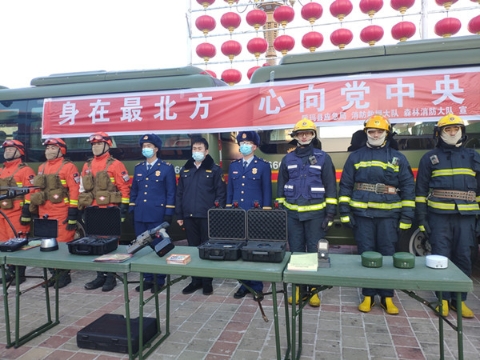 呼瑪縣消防救援大隊(duì)和呼瑪縣森林消防大隊(duì)在呼瑪縣人民廣場設(shè)立裝備講解區(qū)和體驗(yàn)區(qū),將常用的滅火設(shè)施和新配發(fā)的搶險(xiǎn)救援裝備進(jìn)行展示,將傳統(tǒng)的“遠(yuǎn)觀式”變?yōu)椤绑w驗(yàn)式”,吸引駐地群眾到場參觀。通過聯(lián)合宣傳,增加指戰(zhàn)員的榮譽(yù)感、責(zé)任感和使命感,增強(qiáng)了宣傳效果,更加展示了隊(duì)伍的良好形象。