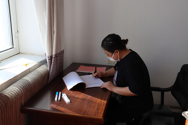 圖為古蓮河露天煤礦疫情防控人員對來往客人進(jìn)行登記