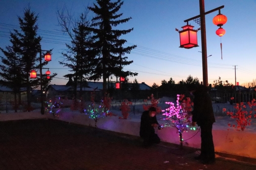 走進(jìn)依西肯林場(chǎng)辦事處,映入眼簾的是寬敞整潔的場(chǎng)院,充滿中國元素的復(fù)古紅燈籠,白色的雪墻襯托著粉色、紅色的手工插花,渾然一體,美輪美奐。當(dāng)夜幕降臨,五彩相間的霓虹流光溢彩,顯得格外奪目,交相輝映,燈光閃耀,年味十足,處處洋溢著喜慶的味道,更是將元旦、春節(jié)喜慶、祥和的氛圍渲染得淋漓盡致,讓人忍不住駐足觀賞。