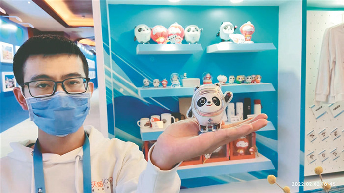 在新聞中心一樓中庭及走廊設(shè)有2022年冬奧會(huì)熱銷特許商品展區(qū),為媒體提供線上定制和購買特許商品服務(wù)。遺憾的是經(jīng)過1日一天的熱賣,幾乎所有“冰墩墩”玩偶都已告罄,可見媒體記者也敵擋不住超級(jí)可愛的冰墩墩的魅力。