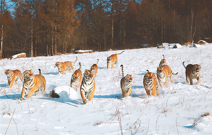 在這片冰天雪地之中,還有非常可愛的動(dòng)物。在東北虎林園和橫道東北虎林園中,雪地“跑酷”的東北虎盡展百獸之王的颯爽雄姿;齊齊哈爾扎龍國家級(jí)自然保護(hù)區(qū)的丹頂鶴,雪地起舞別有風(fēng)情;亞布力熊貓館中翻滾嬉鬧的佑佑和思嘉萌趣可愛;哈爾濱極地公園的網(wǎng)紅“淘學(xué)企鵝”,在雪地散步憨態(tài)可掬;野生“狍子君”在大興安嶺的林中穿梭,聽到聲音還會(huì)好奇的回頭……這些龍江冬日里的小可愛們,活力十足,讓人心生喜愛。