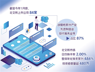 2021年11月15日,北京證券交易所正式揭牌開市,截至目前已滿3個月。記者日前獲悉,截至2022年1月底,北交所上市公司84家,戰(zhàn)略性新興產業(yè)、先進制造業(yè)、現(xiàn)代服務業(yè)等占比87%;新三板創(chuàng)新層掛牌公司1221家、基礎層掛牌公司5694家,呈現(xiàn)出“金字塔”結構。目前,符合北交所上市財務條件的掛牌公司超過千家。