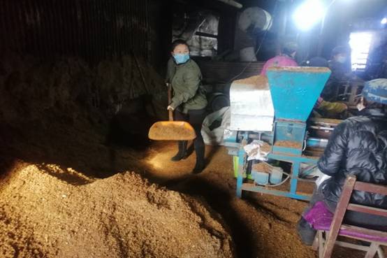 新林林業(yè)局塔源林場(chǎng)黨員志愿者幫助黑木耳養(yǎng)殖戶(hù)做菌上料(董淑玲 攝)