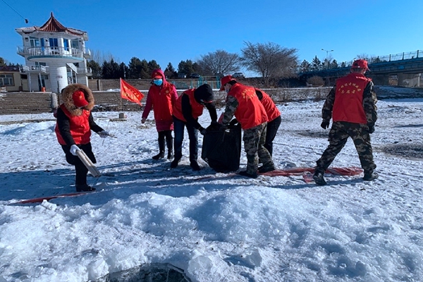 活動中,森調隊15名志愿者們身著志愿者紅馬甲,手拎垃圾袋,走在濕地兩側一邊互相提醒,一邊認真地撿拾游客丟棄在濕地周邊的礦泉水瓶、煙蒂、碎紙屑、塑料袋等生活垃圾。由于氣溫轉暖,冰面濕滑,給清理垃圾工作帶來一定難度,志愿者們克服困難,利用一個多小時的時間,還濕地周邊一片干凈、整潔的環(huán)境。