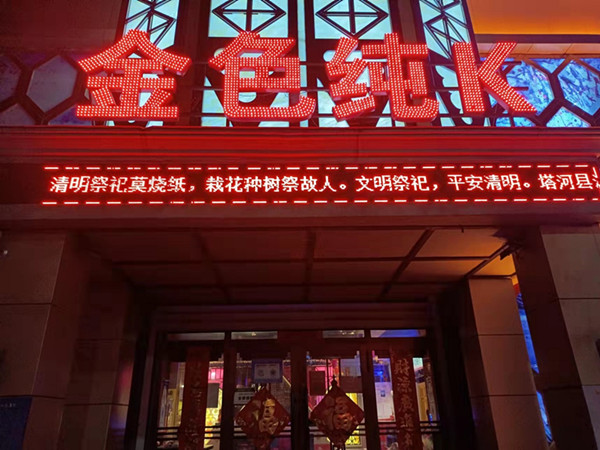 宣傳活動(dòng)中,塔河縣消防救援大隊(duì)緊密結(jié)合轄區(qū)工作實(shí)際,充分利用LED顯示屏具有宣傳效果好、時(shí)間不受限、受眾面廣等特點(diǎn),播放消防宣傳公益廣告和消防標(biāo)語滾動(dòng)字幕。各重點(diǎn)單位在播放本單位信息的同時(shí),將消防知識(shí)作為一項(xiàng)必播內(nèi)容,進(jìn)行全天候、不間斷播放,塔河縣消防救援大隊(duì)還定期對(duì)此項(xiàng)工作進(jìn)行督導(dǎo)檢查,確保播出頻次和播出數(shù)量達(dá)到宣傳效果,使廣大市民通過這種快捷、靈活的宣傳方式,隨時(shí)隨地觀看到主題鮮明、寓教于樂的消防知識(shí)宣傳。