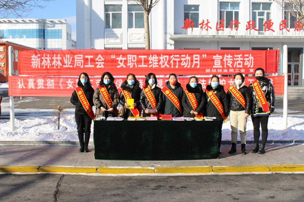 新林林業(yè)局工會(huì)女職工維權(quán)志愿者設(shè)置宣傳臺(tái)接受女職工維權(quán)咨詢(xún)(冀威威 攝)