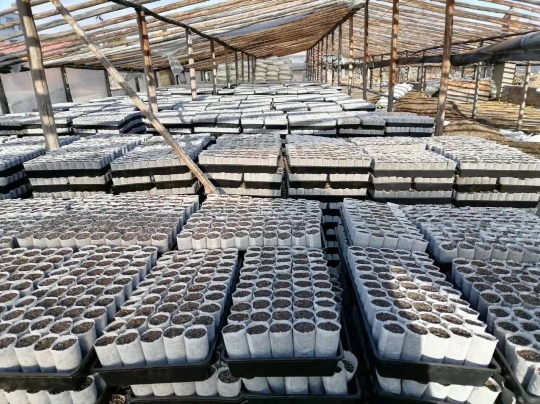 呼中林業(yè)局中心苗圃輕基質(zhì)容器育苗杯數(shù)量已完成10萬(wàn)+(陳東輝 攝)