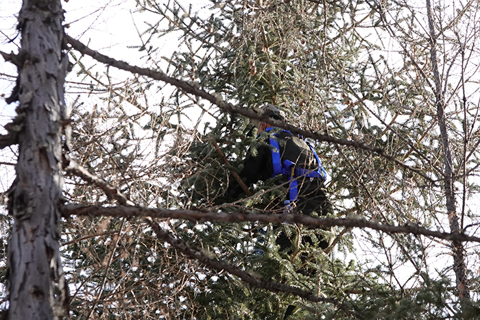 工作人員高空采集穗條(沙夢(mèng)舉 攝)