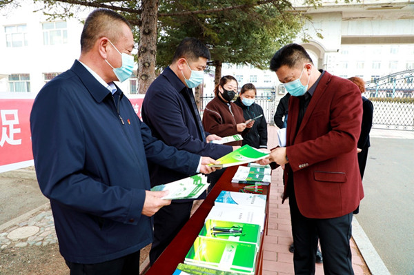 阿木爾林業(yè)局在人員密集場所設(shè)立宣傳站,向職工群眾宣傳森林認(rèn)證相關(guān)知識(shí)(王力 攝)