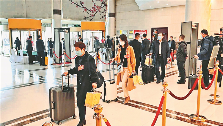 記者在各個代表團(tuán)駐地了解到,各項(xiàng)工作正在有序進(jìn)行。前來報到的代表團(tuán)嚴(yán)格落實(shí)疫情防控要求,提前領(lǐng)取代表出席證和門卡,代表們自覺佩戴口罩,執(zhí)行掃碼、測溫、核酸檢測等防控措施。報到入住后,許多代表顧不得休息,第一時間熟悉會議議程和相關(guān)安排,準(zhǔn)備自己的討論發(fā)言材料。